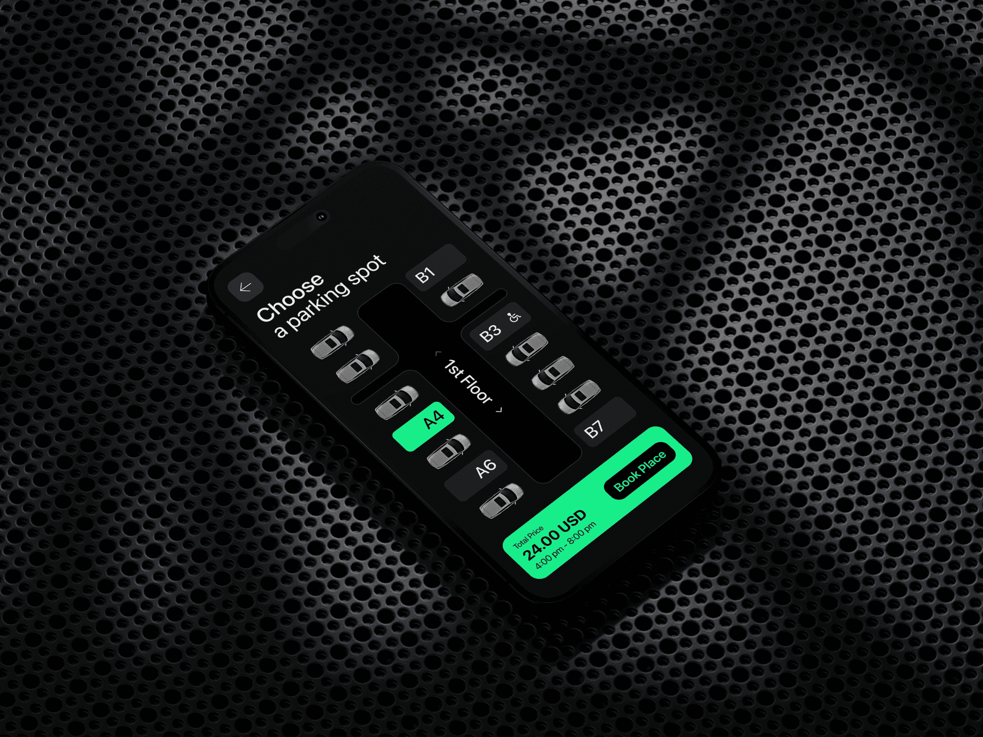 I structured the user flow around a single, critical path: find, reserve, pay, and navigate. The architecture was intentionally minimalist to prevent cognitive overload. Users are immediately presented with a map showing available spots, color-coded for instant clarity.